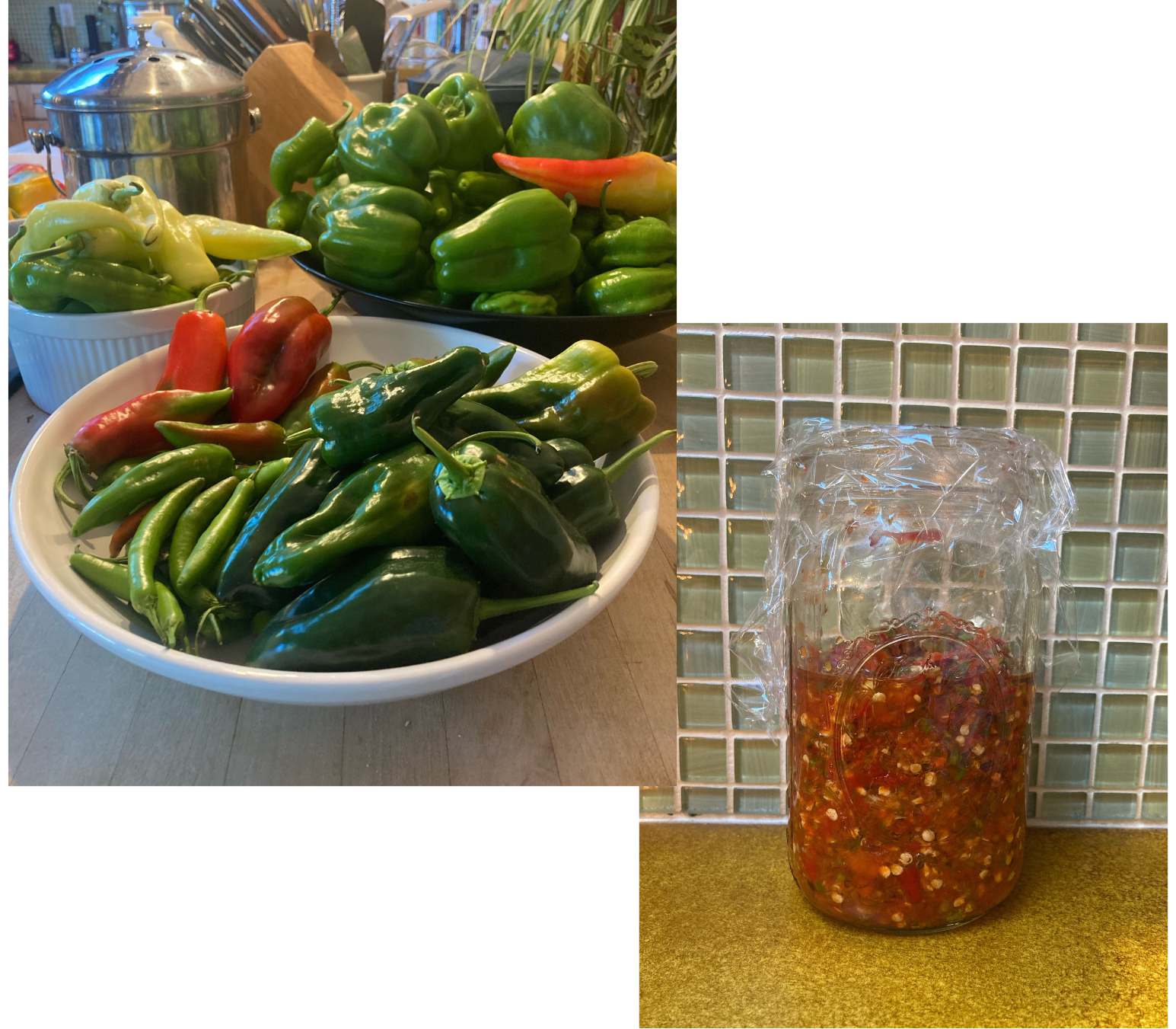 Place the peppers, garlic, sugars, and salt in a food processor and pulse until roughly chopped. Transfer the mixture to a clean container, cover and let sit at room temperature. A mason jar with a loosely fitting lid or a clean bowl with plastic wrap will work.